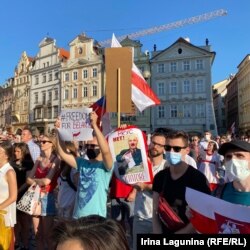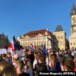 В столице Чехии Праге состоялась акция в поддержку белорусской оппозиции, требующей отставки президента Александра Лукашенко и проведения честных выборов.