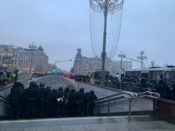 Корреспонденты Радио Свобода передают, что Страстной бульвар зачищает шеренга силовиков, идущая в сторону Петровки. На Тверском бульваре происходят точечные задержания. Трубная площадь оцеплена. Идущих в ее сторону по Петровскому бульвару протестующие заблокированы шеренгой ОМОНа.