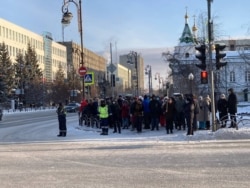 В Улан-Удэ толпа протестующих окружила отдел полиции и потребовала освободить задержанных на акции