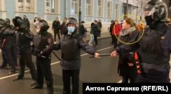 "В основном народ, который там просачивался, это были обычные протестующие, – рассказывает снимавший видео эпизода корреспондент Радио Свобода Антон Сергиенко. – Внезапно появилась эта девушка, которая стала хватать омоновца, потом ей на помощь прибежал человек в оранжевой куртке, плюс к этому там стоял непонятный парень, который как бы встроился в цепочку. Я прошел за оцепление и стал снимать то, что происходило там. Там была группа людей, от которой отделился в том числе мужчина в оранжевом, которая активнее всех кричала "Проходи!", "Не бойтесь!", "Их тут мало!", "Прорвемся, давай, дави!" и так далее. Один мужчина, который был до кордона и не стал через него проходить, развернулся лицом к протестующим и сказал: "Ребята, это провокация, пошли обратно на Трубную!" Действительно, полицейские вели себя очень странно. Они как бы позволяли проходить, лишь легонько иногда кого-то могли толкнуть, хотя мы знаем, как они могут действовать, когда люди пытаются пройти там, где нельзя".