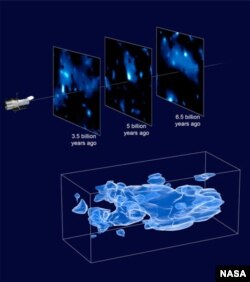 В трехмерной карте свет от галактик самой дальней от Земли группы соотносится со временем, когда вселенной было 6,5 миллиарда лет. Этот древний свет путешествовал дольше и через большее количество темного вещества, чем свет от галактик в самой близкой группе. Объединяя данные от всех трех групп, исследователи создавали трехмерную карту формы и расположения темного вещества в небе.
