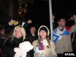Через некоторое время после начала акции к зданию ЦИК подошла колонна активистов пропутинского движения «Россия молодя», которые держали в руках плакаты и плюшевых медвежат. Они кричали «План Путина - победа России!». Представители «Другой России» пытались их перекричать, но « Их пытаются перекричать представители движения "Другой России", но у них ничего не получилось – «россомолов» было больше. ОМОН спокойно наблюдал за этой ситуацией.
