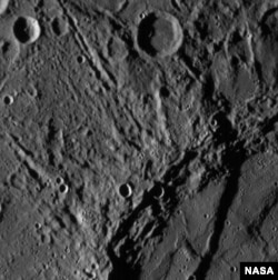 На этом снимке видны кратеры, самый мелкий из которых имеет размер около 270 метров. На фотоснимке область Меркурия в районе экватора планеты. Эта область никогда прежде не фотографировалась и ее еще не видели люди. Снимок выполнен с высоты около 6 тысяч километров. Изображение охватывает область площадью 160 квадратных километров. Детальное изображение позволит ученым исследовать геологию планеты.