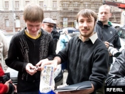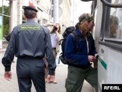Задерженных "геев" грузили в автобус вместе с задержанными борцами за нравственность. Последние соседству были не рады.