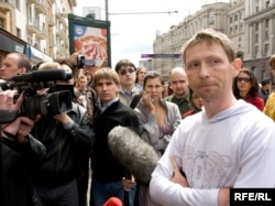 К ним вышел Алексей Давыдов, назвавшийся активистом правозащитного движения геев, лесбиянок и бисексуалов ЛГБТ-райтс и сообщил, что гей-парад состоялся в другом месте: после непродолжительного пикета у памятника Чайковскому у Московской консерватории геи прошли несколько сот метров по Большой Никитской улице в направлении мэрии. На другие вопросы он ответить не успел.