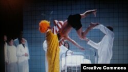 Геннадий Тростянецкий: У меня хороший очень двухтомник Пикассо дома, я перелистываю его и вдруг наталкиваюсь на репродукцию его гениальной картины ''Акробат'', где рука - так, нога — так, голова - в одном углу... И я вдруг понимаю - вот он, подход! И мгновенно возникает эксцентрика, возникает ощущение странного тела. Вот это знаменитое брехтовское ''отстранение'', зритель его замечать не должен, это абсолютно профессиональный термин, но это типичное ''отстранение''. Живые, сильные молодые студенты активно работают, передают энергию, которая живет в этих людях, а в конце (как говорил Антон Павлович Чехов - ''надо дать по щеке читателю'') фраза: ''Все они были не ходячие''. Пикассо подсказал пластику. Мог ли я знать, что именно он это подскажет?