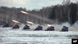 Россия отрицает планы вторжения. Глава Минобороны России Сергей Шойгу в понедельник на встрече с президентом Владимиром Путиным сказал, что сейчас проходят масштабные учения, но большая их часть скоро завершится.