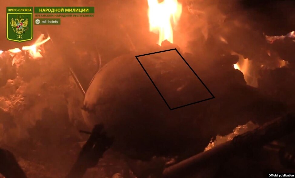 Радио Свобода обратило внимание еще на одно видео – оно было опубликовано утром 23 февраля пресс-службой "народной милиции" "ЛНР". На нем, как утверждается, показаны последствия обстрела украинской противотанковой управляемой ракетой в селе Березовское автомобиля, в котором "находились двое мирных жителей". Оба они якобы погибли.