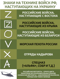 Специальные обозначения на технике войск РФ, которая вторглась на территорию Украины. Ее распространяют в соцсетях: