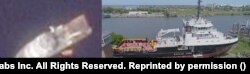 Тот, что находится дальше от острова, был идентифицирован по просьбе Радио Свобода экспертом по российским военно-морским силам Эйч Ай Саттоном как десантный катер проекта 21820 "Дюгонь".