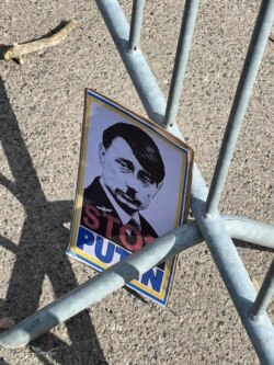 У посольства России в Чехии проходит митинг несогласных с агрессией России против Украины.