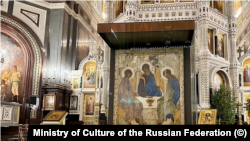 Одна из самых известных русских икон "Троица" кисти Андрея Рублёва будет находиться в московском храме Христа Спасителя до 19 июля, сообщает ТАСС со ссылкой на министерство культуры России. В ведомстве заверили, что "икона в стабильном состоянии, резких колебаний температурно-влажностного режима в храме не зафиксировано".
