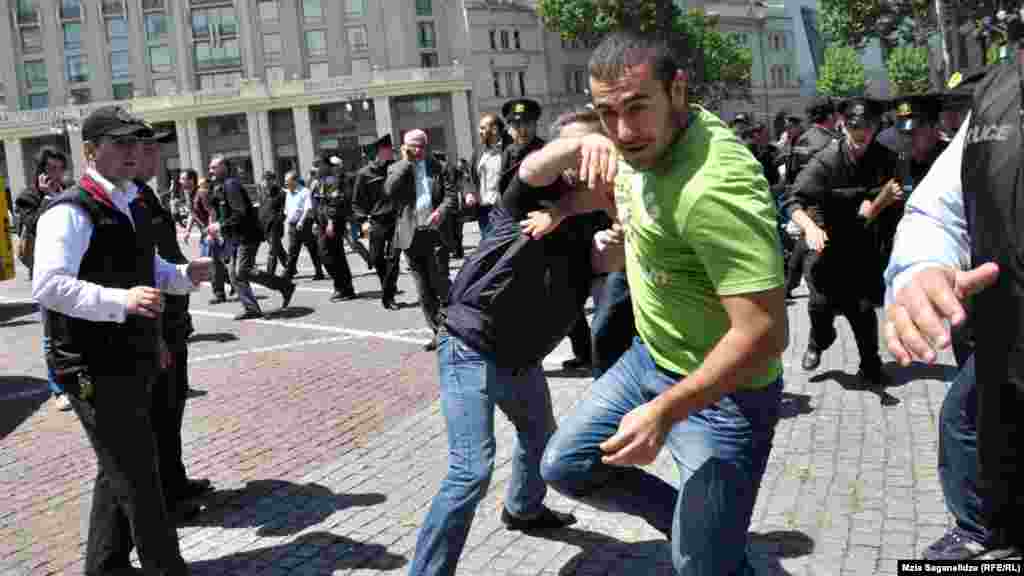В Тбилиси тысячи сторонников православной церкви помешали сегодня проведению шествия представителей сексуальных меньшинств, приуроченного к Международному дню борьбы с гомофобией. Они прорвали оцепление, заполонив улицу, где шествие должно было состояться, и заставив активистов ЛГБТ-движения уехать в автобусах под охраной полиции.