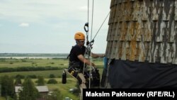 Восстанавливать храмы и крестьянские дома приезжают активисты из фонда "Вереница": собирают деньги в интернете, скидываются сами, отпуск проводят не на пляже, а на стройке. Для сложных работ нанимают мастеров из артели деревянного зодчества "Новое старое", остальным занимаются простые волонтёры. Радио Свобода провело несколько дней с командой "Вереницы" на трёх объектах в Архангельской области: в деревне Зачачье (консервация храма XVII века), в деревне Тиманёвка (изба XIX века с крестьянской живописью) и в селе Волосово (шатровый храм XVII века).