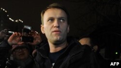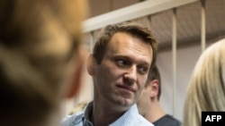 Алексей Навальный после приговора по делу "Ив Роше" 30 декабря 2014 года. Это было второе уголовное дело против политика, по которому он получил 3,5 года условно по обвинению в мошенничестве. Брат Навального Олег был приговорен по этому же делу к реальному сроку. Оба отрицали свою вину и называли преследование политически мотивированным.