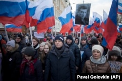 Как и оппозиционный политик Борис Немцов, Алексей Навальный умер в феврале. Немцов был застрелен рядом с Кремлем в 2015 году. Навальный, как уверены его сторонники, остался бы жив, если бы не отравление "Новичком" в 2020 году и пыточные условия в тюрьме. На фото – Алексей Навальный на марше памяти Немцова, 25 февраля 2018 года.