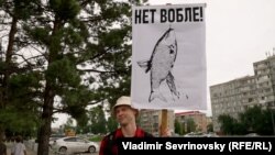 – Я вышел на площадь с плакатом ["Нет вобле"], потому что это большая экологическая проблема, вобла очень агрессивная рыба, изничтожает популяцию соседей своих. Еще она способствует распространению алкоголизма, потому что идет к пиву. Примерно через три минуты после того, как я вышел, подошли примерно пятеро полицейских, задержали меня. Следом еще моего товарища потом привезли в отделение. Потребовали объяснительную. Вышел первый раз. Собираюсь прийти в следующий раз. Это серьезная проблема, на нее нельзя закрывать глаза.