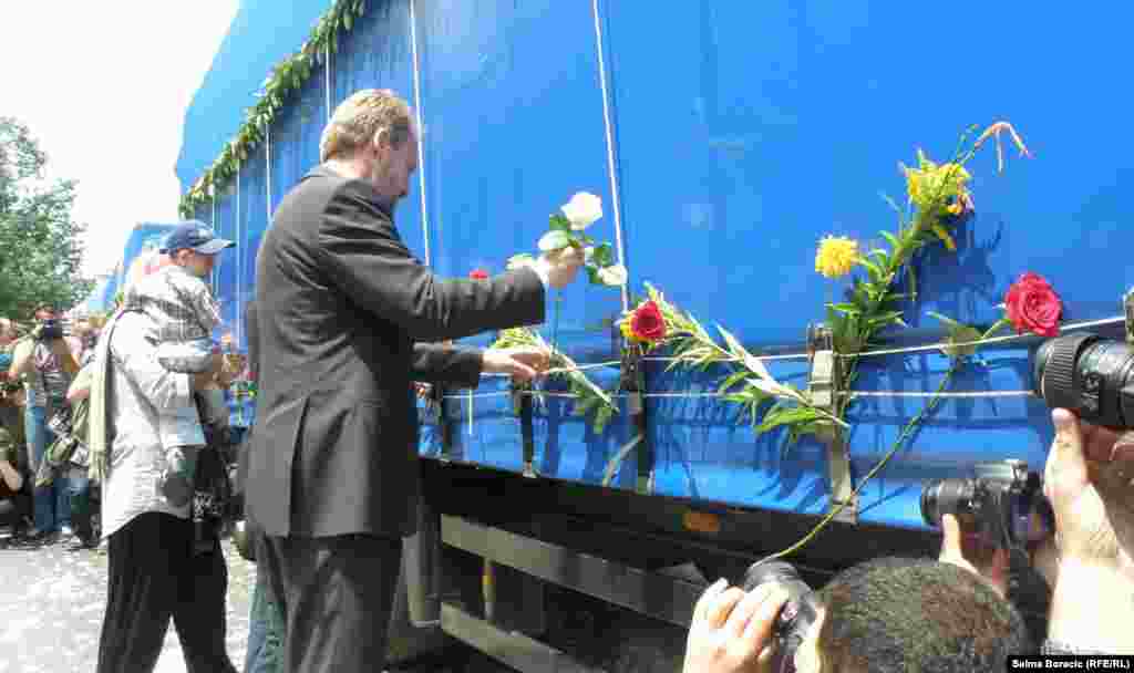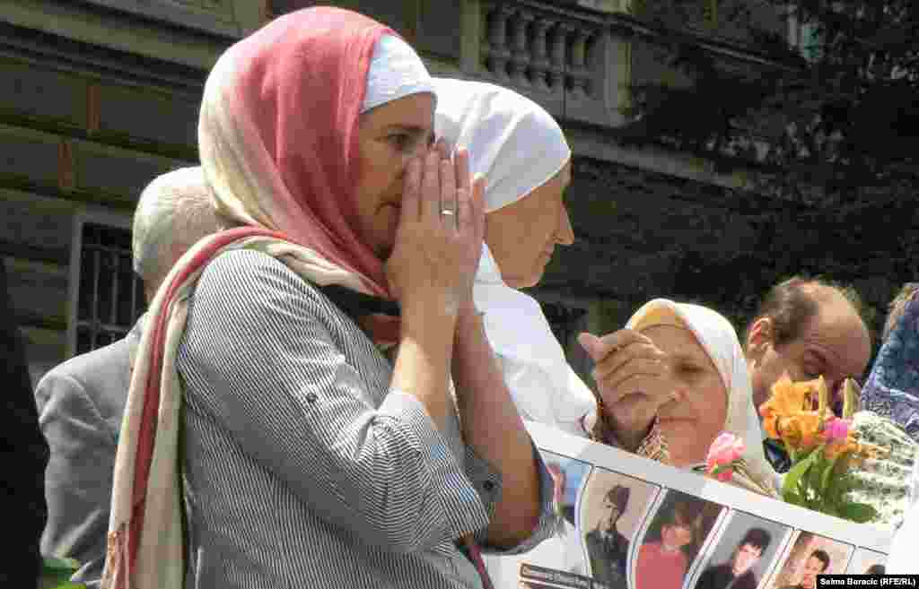 Тысячи жителей Сараево вышли 9 июля для того, чтобы почтить память еще 409 жертв геноцида в Сребренице в 1995 году. Останки этих людей были опознаны лишь через 18 лет после трагедии, в которой от рук армии боснийских сербов погибли более 8 тысяч боснийских мусульман. Останки будут захоронены на меморальном кладбище Поточары вблизи Сребреницы 11 июля. (Фото Сельмы Борачич, RFE/RL)
