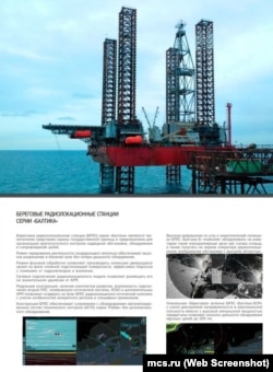 Симок "Невы-БС" на буровой установке в каталоге не подписан, по характерным деталям можно определить, что на нем изображена одна из "старых" СПБУ "Черноморнефтегаза" – "Таврида" или "Сиваш" (всего у "Черноморнефтегаза" 4 самоподъемных буровых установки, две новые "вышки Бойко" и две старые, "Сиваш" 1979 года постройки и "Таврида" 1995 года). Среди клиентов "МКиС", упомянутых в каталоге, есть ФСБ РФ, "Росатом", "Русгидро", Минтранс, на сайте госзакупок можно найти контракты "МКиС" с Федеральной службой охраны, но "Черноморнефтегаз" – единственный клиент этой компании, ведущий морскую нефтегазодобычу. Это косвенно свидетельствует о том, что установка РЛС на морских объектах в Черном мотивирована не производственной необходимостью, а интересами военных или спецслужб.