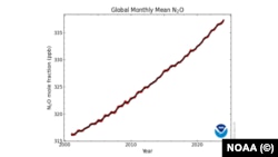 Содержание закиси азота в воздухе выросло на 25% примерно за полтора века из-за широкого использования азотных удобрений, очистки сточных труб и сжигания топлива.