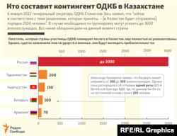 Пока из пятерки стран ОДКБ заявленное участие в операции в Казахстане частично выполнили три страны – Россия, Беларусь и Армения