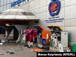 Корреспонденты Радио Свобода передают новые фотографии из центра Алматы, сделанные утром 10 января. На этих снимках видно, что в городе осталось еще довольно много следов мародерства и столкновений протестующих с полицией.