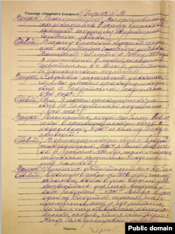 Далее в папку подшита расписка в том, что Деркач К.В. с материалами предварительного следствия ознакомлена, никаких дополнений и ходатайств не имеет. За сим следует медицинская справка: "Деркач Ксения Владимировна 1928 г. рожд. здорова, к физ. труду годна".