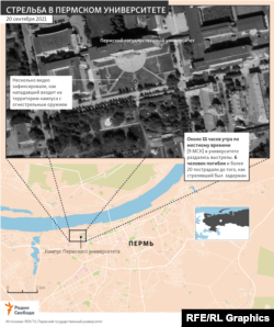 Студент открыл утром в понедельник стрельбу в Пермском государственном университете. По официальным уточнённым данным Следственного комитета, погибли 6 человек, пострадали 28. Часть из них госпитализированы с травмами и ранениями различной степени тяжести. Ранее сообщалось о 8 погибших.