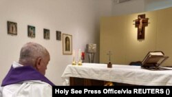 С 14 февраля папа не появлялся на публике, за время болезни он записал одно аудиообращение к верующим. На опубликованной в воскресенье фотографии папа изображён со спины, по всей видимости он находится в домовой часовне в здании больницы. Ватикан сообщил, что в воскресенье Франциск отслужил там мессу вместе с другими священниками. На фото нет трубок для подачи кислорода, из чего следует, что по крайней мере часть времени папа может дышать самостоятельно. Ранее сообщалось, что он находится на кислородной терапии.